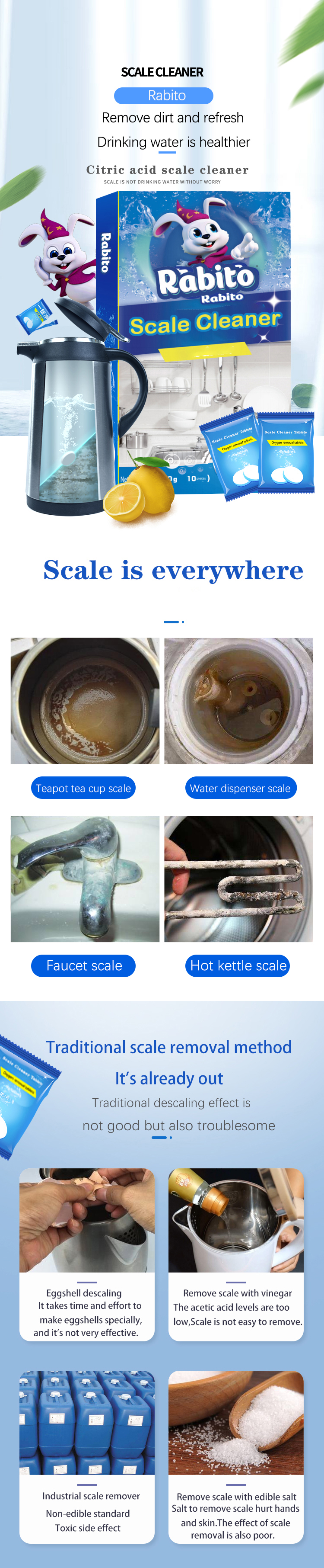 To remove scale on bowl, cup, kettle